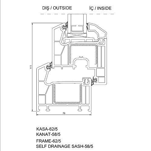 - 5 odacıklı profilleriyle ısı ve ses yalıtımında yüksek performans sağlar.